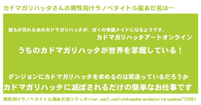| ヘコむあだ名 | 『カドマガリハッタ(爆)』『カドにゅー』 |