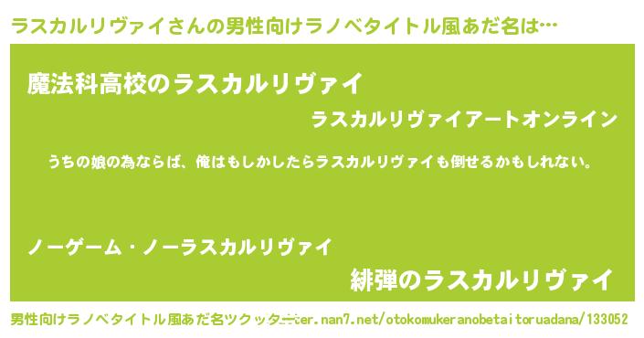 | ファンタジー風あだ名 | 『エターナルラスカルリヴァイー』 |