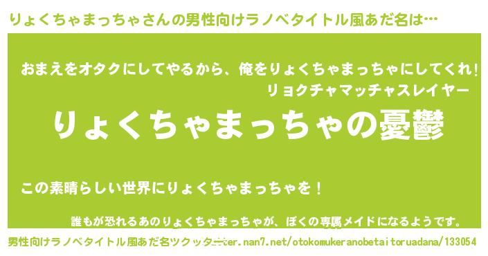 | 女子向けラノベタイトル風あだ名 | 『りょくちゃまっちゃ姫と円卓の騎士』 |
