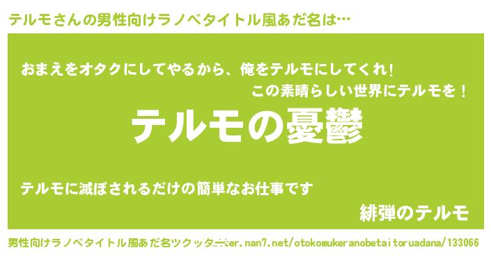 | 女子向けラノベタイトル風あだ名 | 『(仮)テルモのやんごとなき事情』 |