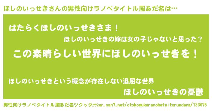 | 意味不明あだ名 | 『住所不定無職ほしのいっせき(2歳)』 |