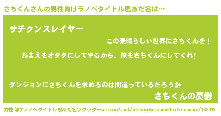 | 女子向けラノベタイトル風あだ名 | 『さちくん夫妻のなれそめ』 |