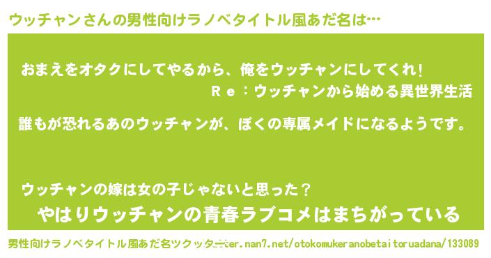 | 意味不明あだ名 | 『永久保存ウッチャン』『自称ウッチャン』 |