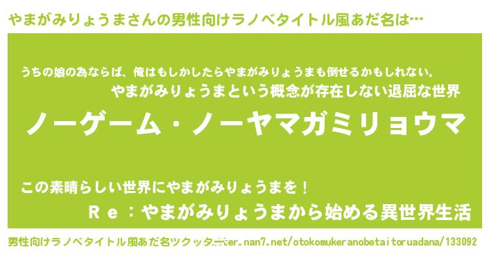 | 伝説のあだ名 | 『救世主となる占い師やまがみりょうま』 |