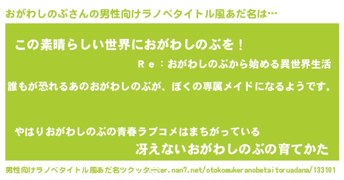 | 女子向けラノベタイトル風あだ名 | 『異世界でカフェおがわしのぶを開店しました。』 |