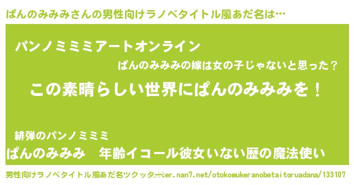 | 胡散臭い通販商品みたいなあだ名 | 『あなたにだけ特別に提供する100年もののヴィンテージワイン…その名も「ぱんのみみみ」』 |