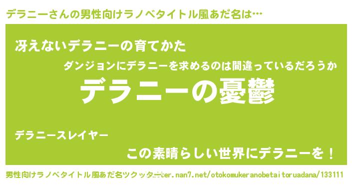 | 胡散臭い通販商品みたいなあだ名 | 『必ず成功する水晶球…その名も「デラニー」』 |