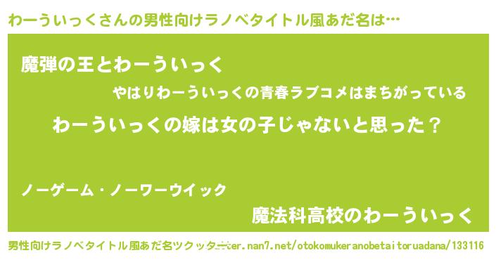 | 意味不明あだ名 | 『とにかく怪しいわーういっく』 |