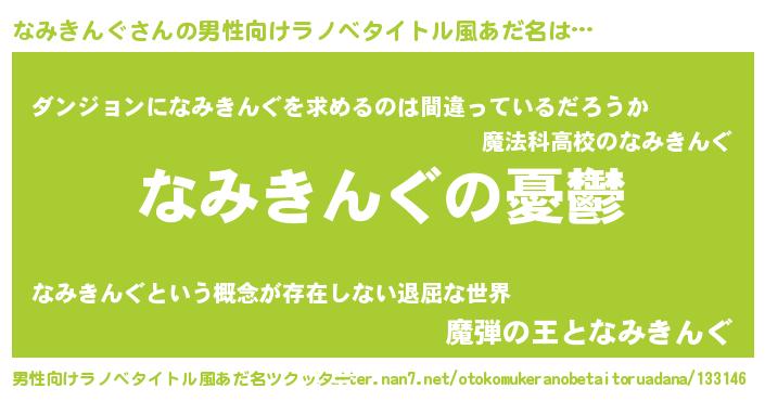 | ヒーロー風カッコイイあだ名 | 『スーパーナミキング』『暗黒騎士ナミ』 |