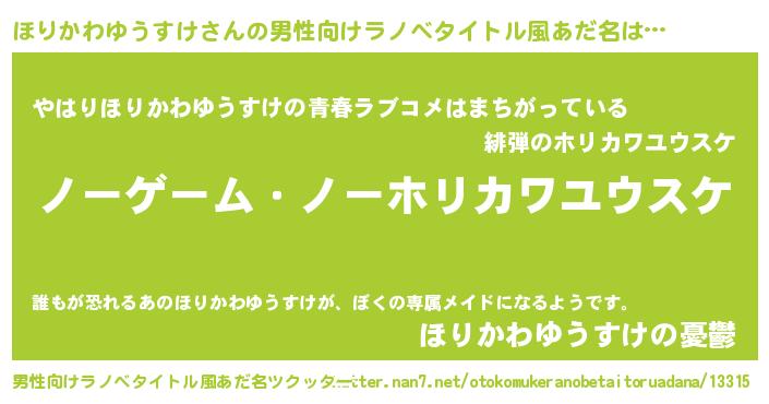 | 伝説のあだ名 | 『救世主となる占い師ほりかわゆうすけ』 |