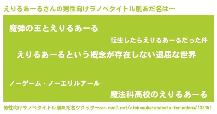 | ヒーロー風カッコイイあだ名 | 『ネオエリルアール』『仮面エリダー』 |