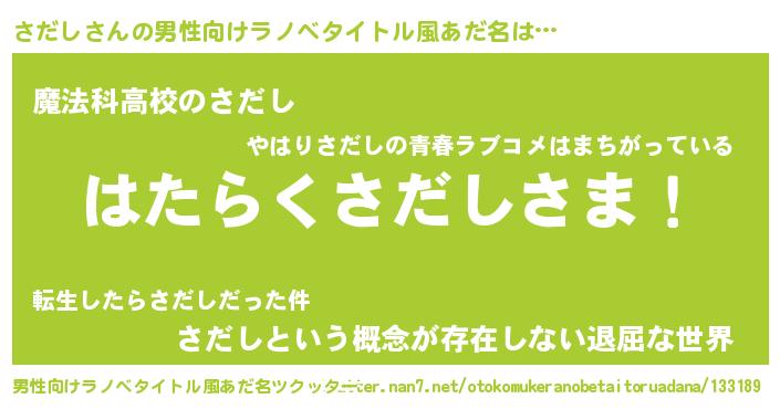 | 意味不明あだ名 | 『自称さだし』『永久保存さだし』 |