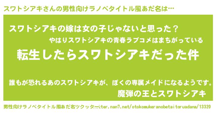 | 胡散臭い通販商品みたいなあだ名 | 『伝統あるネックレス…その名も「スワトシアキ」』 |