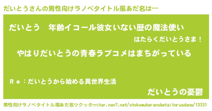 | 女子向けラノベタイトル風あだ名 | 『だいとうの雑貨屋さん』 |