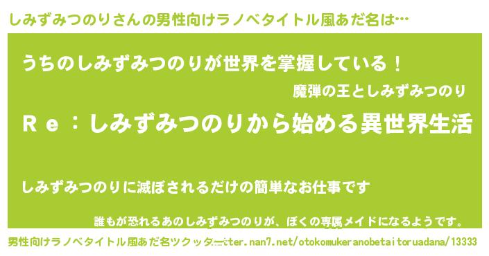 | 女子向けラノベタイトル風あだ名 | 『しみずみつのりストレイドッグス』 |