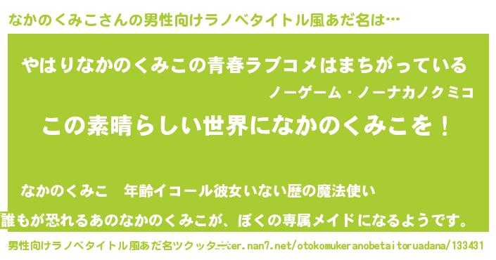 | 意味不明あだ名 | 『住所不定無職なかのくみこ(62歳)』 |