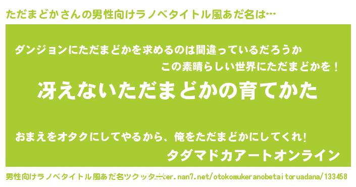 | 女子向けラノベタイトル風あだ名 | 『男装ただまどかの憂鬱な任務』 |