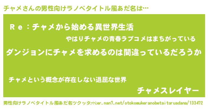 | 女子向けラノベタイトル風あだ名 | 『チャメは平凡を望む』『闇のチャメ』 |