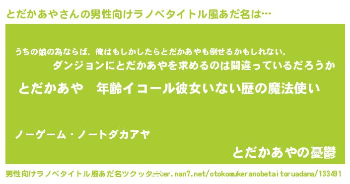 | 胡散臭い通販商品みたいなあだ名 | 『運命の人と巡り会える高級そうな壺…その名も「とだかあや」』 |