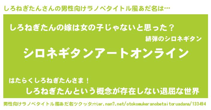 | 女子向けラノベタイトル風あだ名 | 『しろねぎたん姫と円卓の騎士』 |