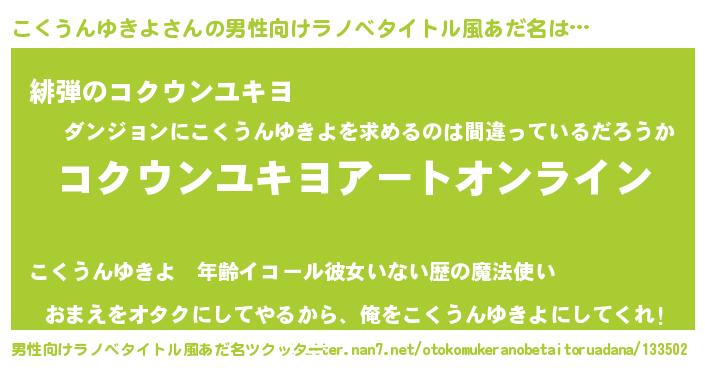 | 胡散臭い通販商品みたいなあだ名 | 『億万長者になれる霊験あらたかなお札…その名も「こくうんゆきよ」』 |