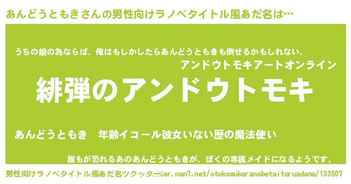 | 女子向けラノベタイトル風あだ名 | 『シンデレラあんどうともき家の靴箱館』 |