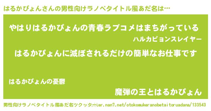| 女子向けラノベタイトル風あだ名 | 『横柄はるかぴょんと宰相陛下』 |