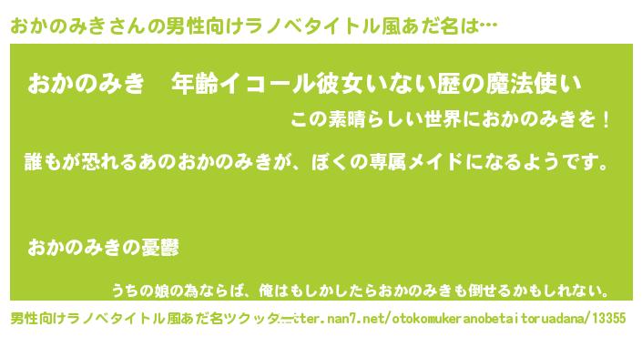 | 意味不明あだ名 | 『永久保存おかのみき』 |