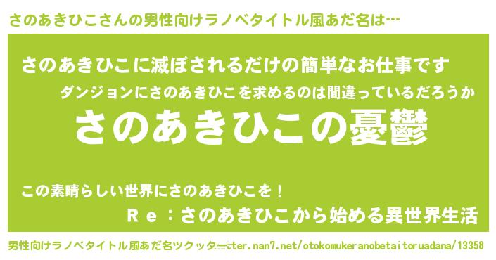 | 胡散臭い通販商品みたいなあだ名 | 『必ず成功する霊験あらたかなお札…その名も「さのあきひこ」』 |