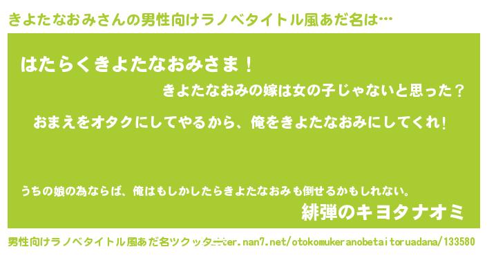 | 女子向けラノベタイトル風あだ名 | 『きよたなおみ恋絵巻』 |
