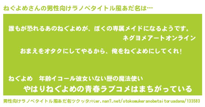 | ヘコむあだ名 | 『ねぐよめ(笑)』『なまこ酢』 |
