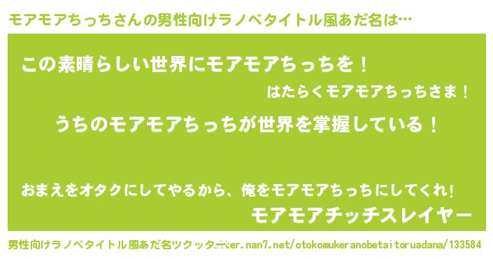 | 意味不明あだ名 | 『住所不定無職モアモアちっち(12歳)』 |