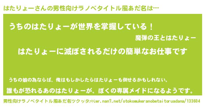 | 意味不明あだ名 | 『永久保存はたりょー』 |