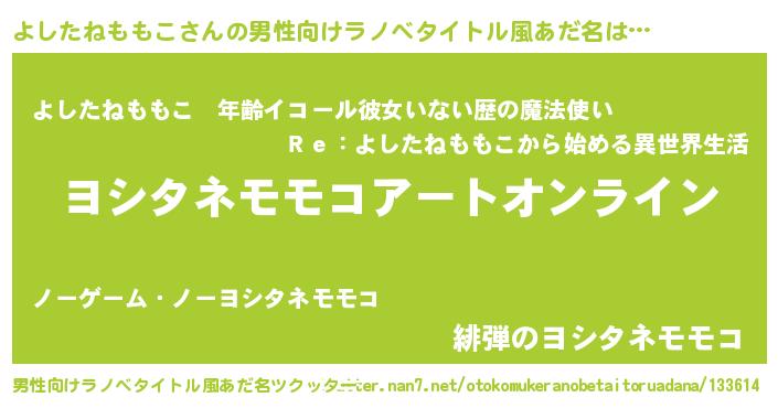 | 女子向けラノベタイトル風あだ名 | 『よしたねももこ姫と円卓の騎士』 |