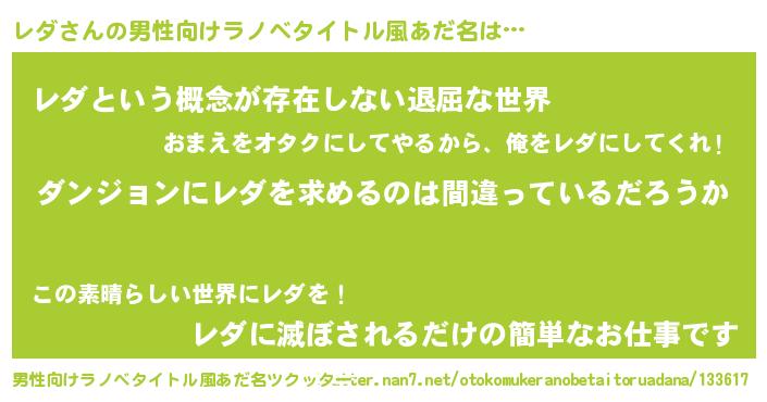 | 女子向けラノベタイトル風あだ名 | 『レダは平凡を望む』『レダの契約王妃』 |
