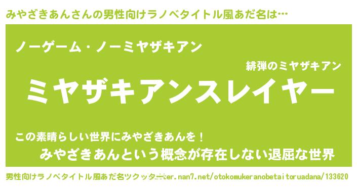 | ヘコむあだ名 | 『みやざきあん(苦笑)』『なまこ酢』 |