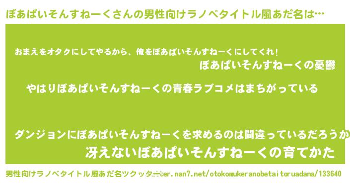 | 意味不明あだ名 | 『ぼあぱいそんすねーくフォーエバー』 |