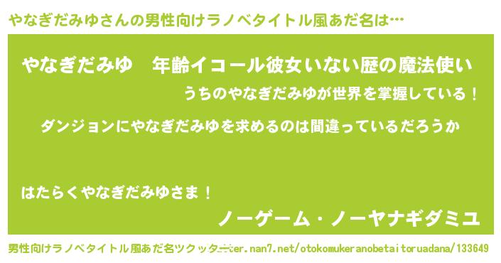 | ヘコむあだ名 | 『やなっぺ』『やなぎだみゆ(爆)』 |