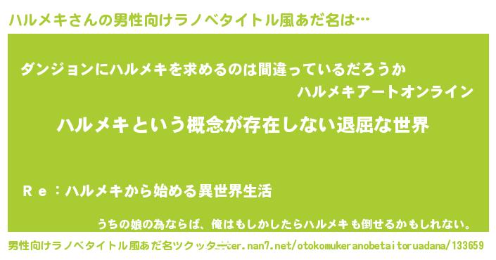 | 伝説のあだ名 | 『聞きしに勝る吟遊詩人ハルメキ』 |