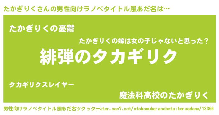 | 胡散臭い通販商品みたいなあだ名 | 『必ず成功するブレスレット…その名も「たかぎりく」』 |