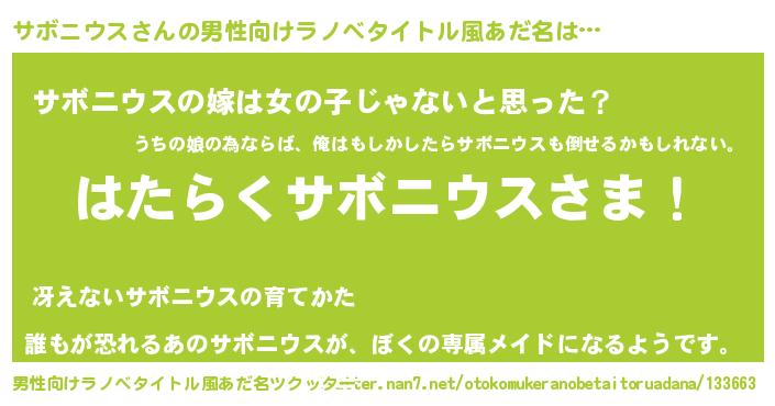 | 胡散臭い通販商品みたいなあだ名 | 『信頼と実績のペンダント…その名も「サボニウス」』 |