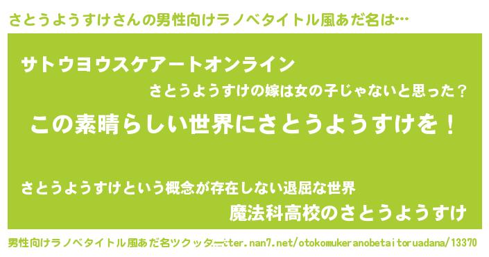 さとうようすけさんの男性向けラノベタイトル風あだ名をツクッター!