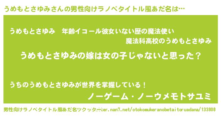 | 女子向けラノベタイトル風あだ名 | 『うめもとさゆみの卵を拾いまして』 |