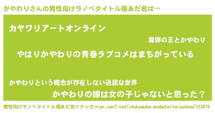 | 女子向けラノベタイトル風あだ名 | 『かやわりの雑貨屋さん』 |