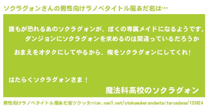 | 女子向けラノベタイトル風あだ名 | 『ソクラグォン夫妻のなれそめ』 |