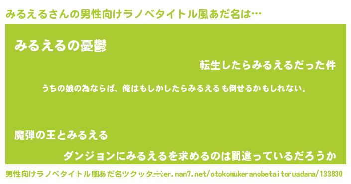 | 意味不明あだ名 | 『みるえるフォーエバー』 |
