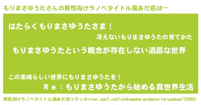 | 女子向けラノベタイトル風あだ名 | 『異世界で失敗しない100のもりまさゆうた』 |