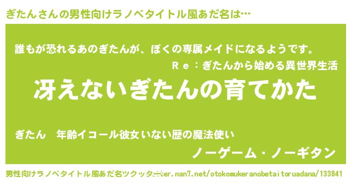| 胡散臭い通販商品みたいなあだ名 | 『来世でも幸せになれる水素水…その名も「ぎたん」』 |