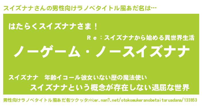 スイズナナさんの男性向けラノベタイトル風あだ名をツクッター!