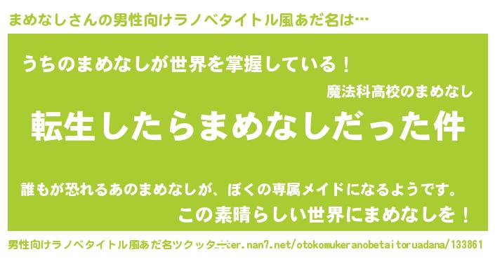 | 胡散臭い通販商品みたいなあだ名 | 『世界中を虜にした100年もののヴィンテージワイン…その名も「まめなし」』 |